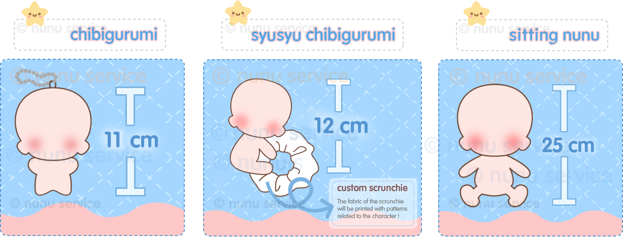 Due to the small scale of facial embroidery, certain details may be too intricate or complex to reproduce accurately. Designs may therefore be adapted or simplified into a chibi-style aesthetic to preserve overall visual quality. Chibigurumi faces will follow classic nui design conventions similar to those produced by Banpresto. I do not create drastically different facial styles.Important Details Disclosure